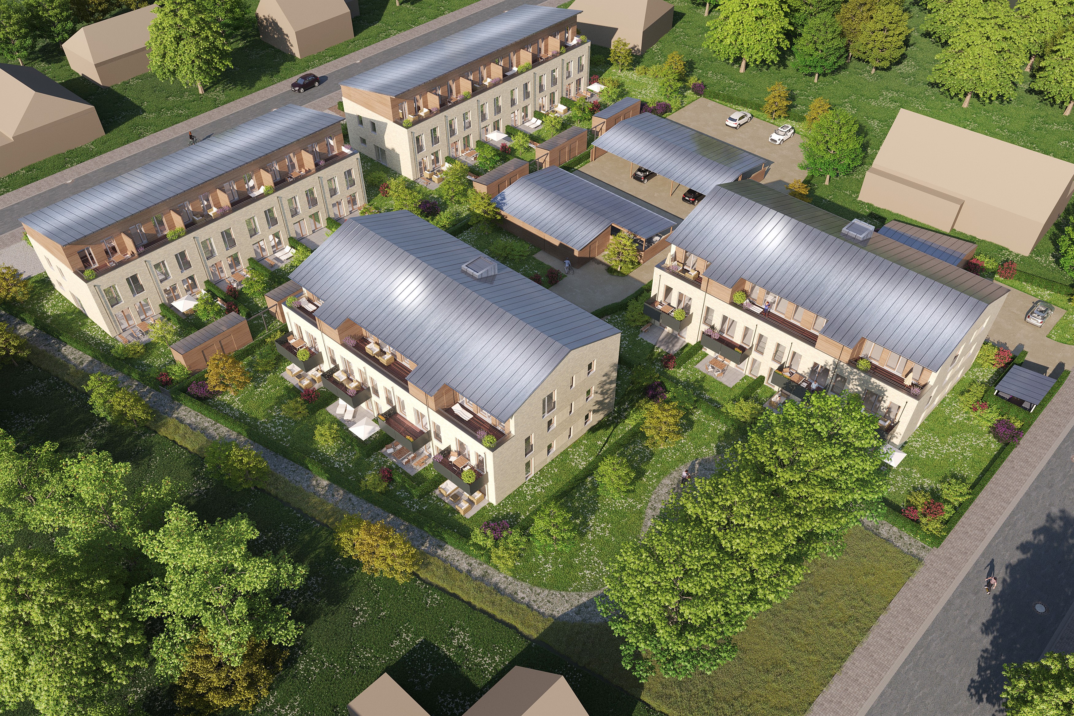 Die gepflegte Wohnanlage „Vier Linden“ besteht aus einem Wohnhaus mit 11 Eigentumswohnungen sowie einem Wohnhaus mit 11 Mietswohnungen und zwei Reihenhauszeilen á 6 Häuser, die in KfW40-Bauweise auf dem Grundstück der alten Jübeker Gärtnerei erstellt werden. KfW40 beschreibt einen besonders energiesparenden Bau- und Sanierungsstandard.